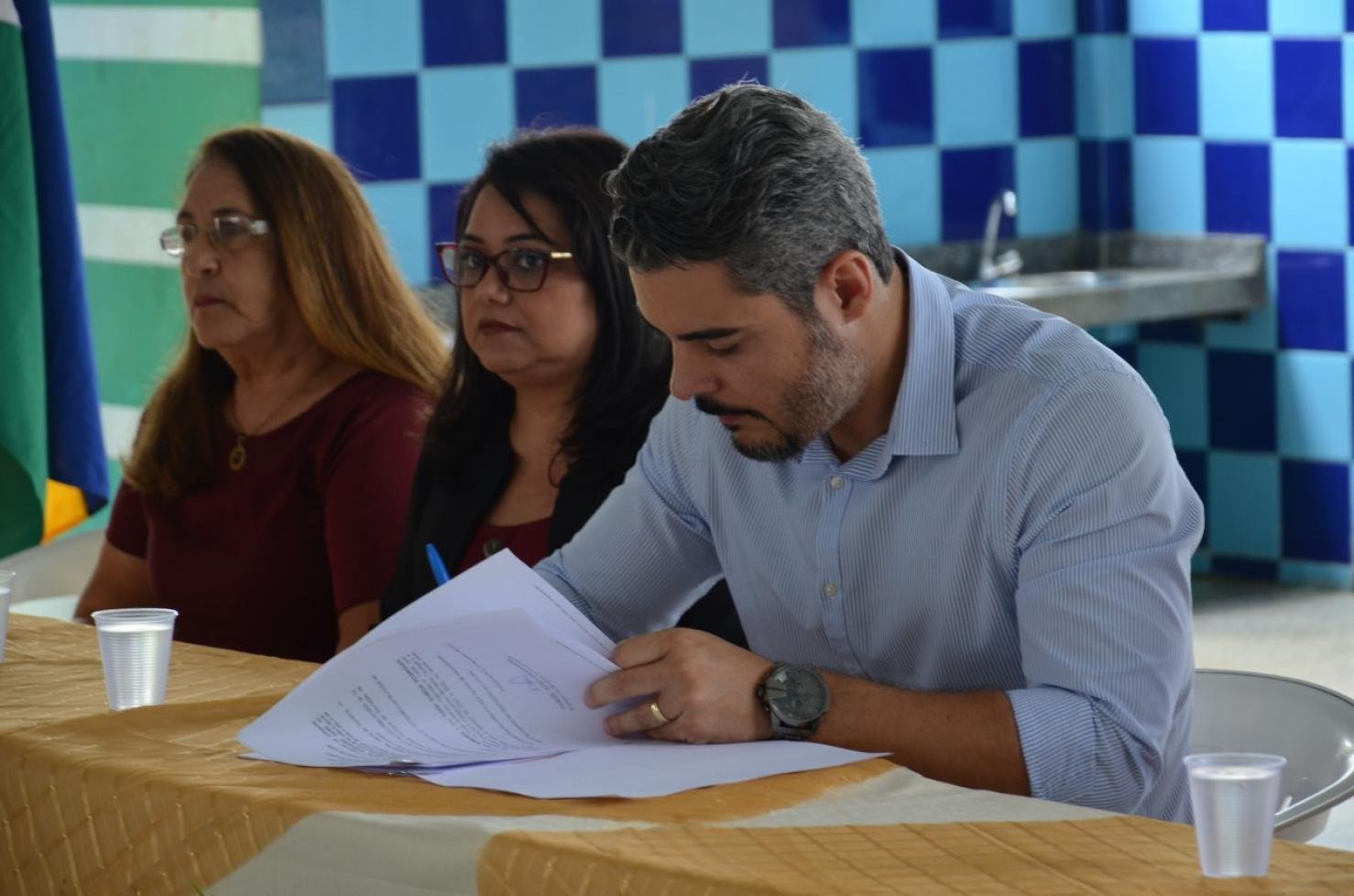 A solenidade de posse aconteceu na EMEFM Mário Quintana, no Setor 4, onde também estiveram presentes o Prefeito Thiago Flores; a Secretária da SEMED, Cleuzeni Maria de Jesus; a Diretora de Ensino, Neidair Mazine de Lima; e os vereadores Eronildo Pereira (PRB), Loureci Vieira (PP) e Nairton Barbosa (PP). Além de professores e familiares dos gestores.