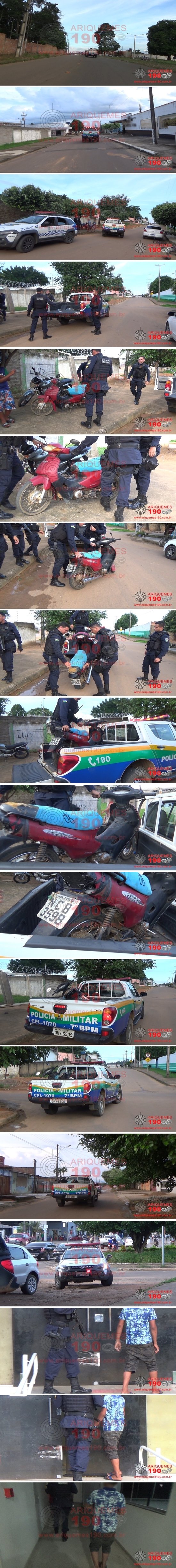 Era por volta das 18h 20min desta segunda-feira, dia 06/01, quando a guarnição da Polícia Militar estava em patrulhamento de rotina pela Rua Antônio Arruda, no Setor 10 em Ariquemes, quando avistou um individuo que estava com uma motoneta marca Honda, modelo C100 Biz, a qual teria sido furtada na mesma data. Diante das constatações os PMs procederam a abordagem ao suspeito, um menor de 15 anos, o qual informou aos policiais que teria adquirido a moto mais cedo e como pagamento teria dado um aparelho celular. O menor também informou o endereço do individuo que teria vendido a moto para ele, mas em patrulhamento pelas proximidades da residência informada, não lograram êxito em encontrar o infrator. Diante dos fatos o menor foi apresentado na Unidade de Segurança Pública (UNISP), juntamente com a motoneta, para que sejam tomadas as providências cabíveis ao caso.
