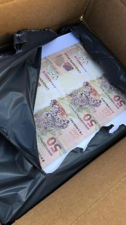 De acordo com a PRF, o dinheiro chegou na Agência dos Correios de Ji-Paraná acondicionado em uma caixa de papelão. A encomenda feita pela dupla continha 63 folhas R$100 que somaram R$ 25.200,00; 252 folhas de R$ 20 no valor de R$ 30.240,00; 150 folhas de R$ 50 no valor de R$ 30.000,00; e 249 folhas de R$ 10 somando R$ 14.940,00, que juntas, totalizaram os R$ 100.380,00 em notas falsas.