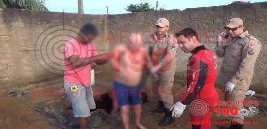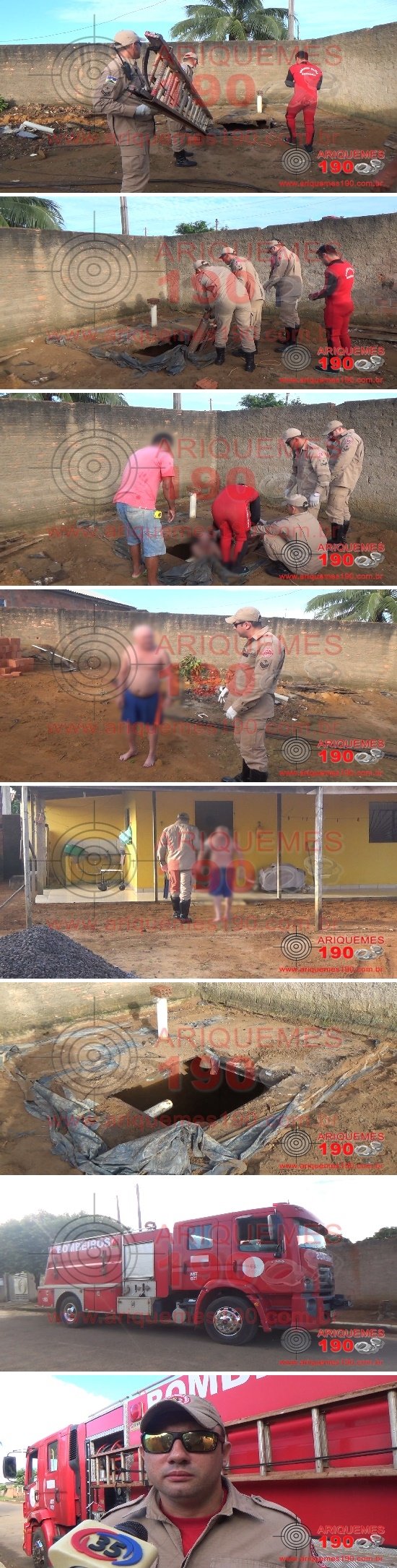 ARIQUEMES: Idoso é resgatado pelo Corpo de Bombeiros após cair em fossa rasa no Jd. Alvorada