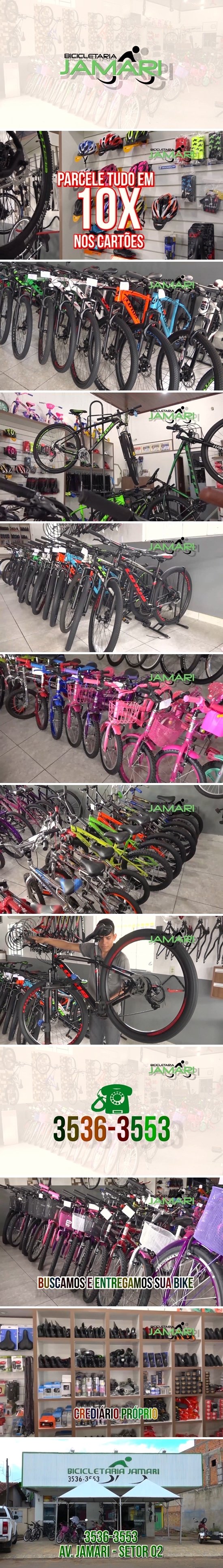 Isso mesmo, na promoção Volta às Aulas da Bicicletaria Jmari, você pode parcelar as suas compras em até 10x nos cartões. Temos uma grande variedade de bicicletas adulto, infantil e infanto juvenil, de variadas marcas cores e modelos. E para você que quer consertar a sua bicicleta, é só ligar para o numero 3536-3553. Buscamos e entregamos a sua bicicleta.