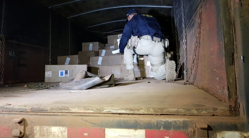Após receber uma denúncia anônima, uma guarnição da PRF abordou, no km 341 da BR-364, aproximadamente às 23h30, um caminhão com placas de Campo Largo (PR). O motorista, de 40 anos, forneceu várias respostas contraditórias aos policiais, que decidiram vistoriar o compartimento de carga, momento em que localizaram os maços de cigarro.
