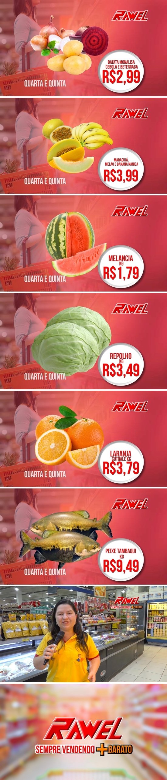 Mais baratos todos os dias é só no Rawel. Na Avenida Jamari, em frente à Praça da Vitória.