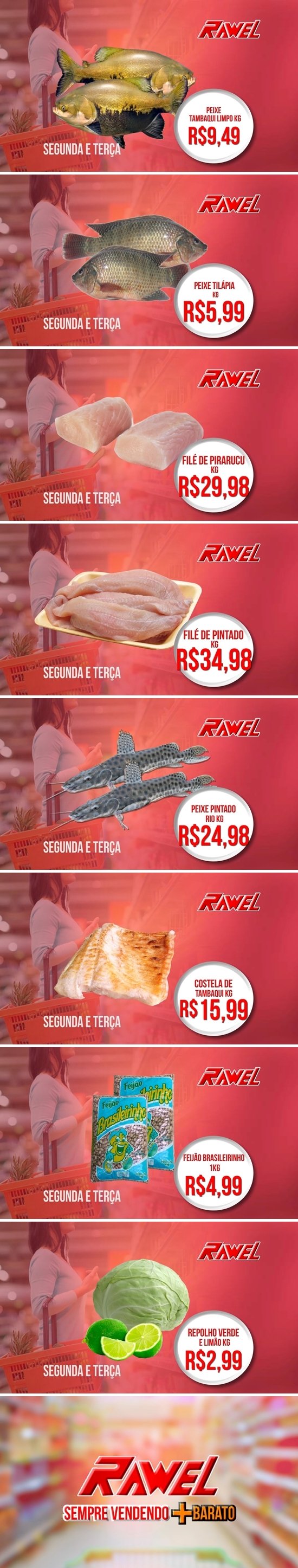 Mais baratos todos os dias é só no Rawel. Na Avenida Jamari, em frente à Praça da Vitória.