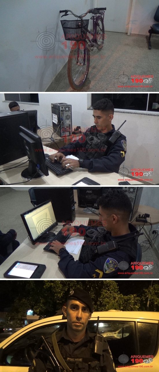 Por volta das 20h14min desta terça-feira, dia 04/02, a guarnição da Polícia Militar realizava patrulhamento de rotina pela Av. Tancredo Neves em Ariquemes, quando em dado momento foi abordada pela vítima M.S.F., 30 anos, a qual relatou que deixou sua bicicleta estacionada e cadeada em frente a Unidade de Pronto Atendimento (UPA) e que quando voltou não encontrou mais sua bicicleta. Momentos mais tarde, ao passar em frente a uma residência a vítima avistou sua bicicleta com o elemento V.S.X., 35 anos, sendo que imediatamente acionou a guarnição da Polícia Militar via 190. Ao chegarem no local os policiais abordaram o elemento e indagaram do mesmo referente à procedência da bicicleta, o qual afirmou ter pego a bicicleta emprestada de um amigo o qual não conhece. Diante das informações relatadas as partes, juntamente com a bike foram encaminhadas para a Unidade de Segurança Pública (UNISP), onde a vítima apresentou a nota fiscal constatando a propriedade do bem. O Boletim de Ocorrência Policial sob n° 22.883/2020, para que sejam tomadas as providências cabíveis ao fato.