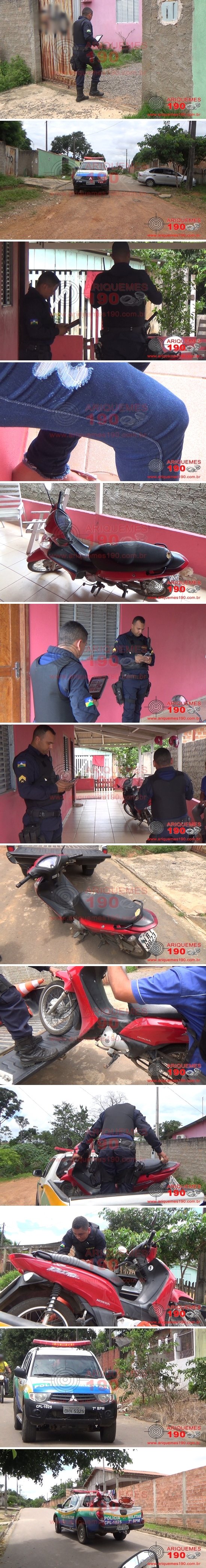 Já era meio dia desta quarta-feira, dia 05/02, quando as guarnições da Polícia Militar em patrulhamento foram informadas via Central de Operação em Rede de Rádio, de que um elemento estaria tentando praticar algum tipo de delito no Bairro Nova União I em Ariquemes. Imediatamente os policiais se deslocaram para as imediações e iniciaram o patrulhamento pelo local, sendo que em poucos instantes foi informado que o mesmo elemento teria consumado o fato na Rua Turmalinas. Os policiais se deslocaram até o referido endereço, onde puderam constatar a veracidade das informações, sendo que a vítima informou que estava em frente a sua residência, quando um elemento em posse de uma arma de fogo tipo garrucha, abordou a mesma e subtraiu a sua motoneta marca Honda, modelo Biz, deixando no local a motoneta a qual utilizou para fazer o roubo, marca Honda, modelo Biz de cor vermelha placa NBI-8823 de Vilhena/RO, que tem registro de Roubo sob n° 116.728 ocorrido em 04/02/20. Diante dos fatos as guarnições de serviço fizeram diligências a fim de localizar o infrator, porém sem êxito. O Boletim de Ocorrência Policial foi registrado sob número 23.374/2020, para que sejam tomadas as providências cabíveis e posteriormente o bem seja devolvido ao seu legítimo proprietário.