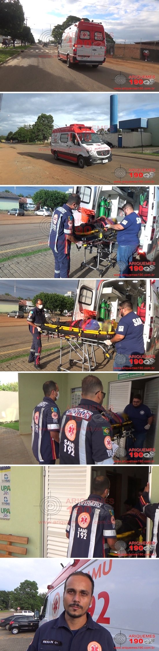 Por volta das 17h30m desta sexta-feira, 07/02, a Central do Serviço de Atendimento Móvel de Urgência (SAMU) foi acionada a comparecer na Rua Turmalina, Bairro 25 de Dezembro em Ariquemes, pois a informação era de que no local teria ocorrido um acidente de trânsito. Rapidamente a equipe composta pelos socorristas: Enfermeiro Renan e Condutor Ailton se deslocaram na Unidade de Suporte Básico (USB), onde ali chegando puderam confirmar as informações do chamado, encontrando a vítima, um homem, o qual sentia fortes dores na região do ombro. De imediato foram iniciados os procedimentos pré-hospitalares, onde na sequência a vítima foi conduzida ao pronto socorro da Unidade de Pronto Atendimento (UPA) para receber cuidados médicos especializados. Aos socorristas o homem relatou que conduzia sua motocicleta pela via, quando houve a colisão com um carro, não sabendo dar mais detalhes.