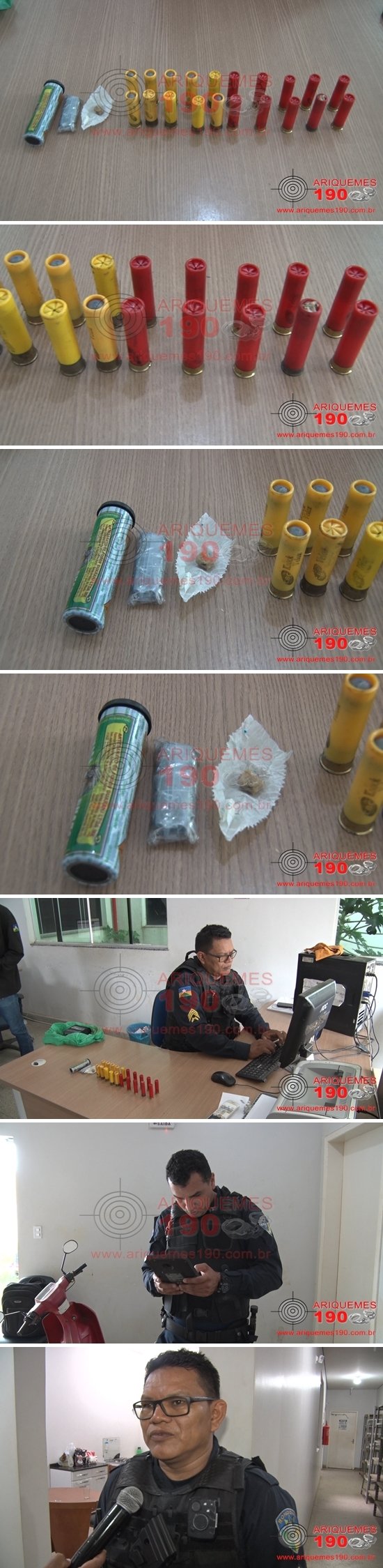 Por volta das 15h desta segunda-feira, dia 10/02, a guarnição da Polícia Militar realizava patrulhamento de rotina pela Rua Antônio Arruda no Setor 10 em Ariquemes, quando em dado momento avistaram um elemento o qual teria as mesmas características citadas por uma vítima em um assalto há alguns dias, sendo abordado o mesmo e entrando em contato com a vítima, a qual não reconheceu o suspeito. Ao realizarem revista na residência onde o suspeito se encontrava, que é de propriedade da senhora C.L.C., 37 anos, a qual franqueou a entrada dos policiais na residência, foram encontrados 09 cartuchos calibre .28, 10 cartuchos calibre .20, 01 estojo de pólvora e 10 balotes, além de uma porção de substância entorpecente aparentando ser Crack, a qual a mulher afirmou ser para seu uso pessoal. Indagado a mesma referente às munições, esta informou que pertenceria a seu ex-marido e que não teria conhecimento de tais munições. Diante dos fatos a mulher foi conduzida até a Unidade de Segurança Pública (UNISP), onde foi registrado o Boletim de Ocorrência Policial sob n° 26.749/2020, para que sejam prestados melhores esclarecimentos à autoridade policial.
