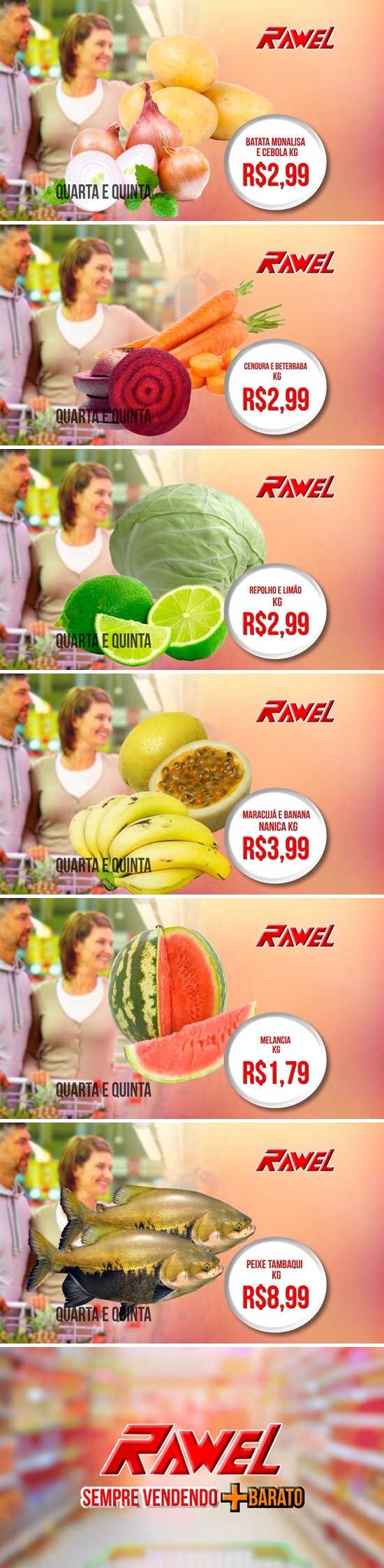 Mais baratos todos os dias é só no Rawel. Na Avenida Jamari, em frente à Praça da Vitória.