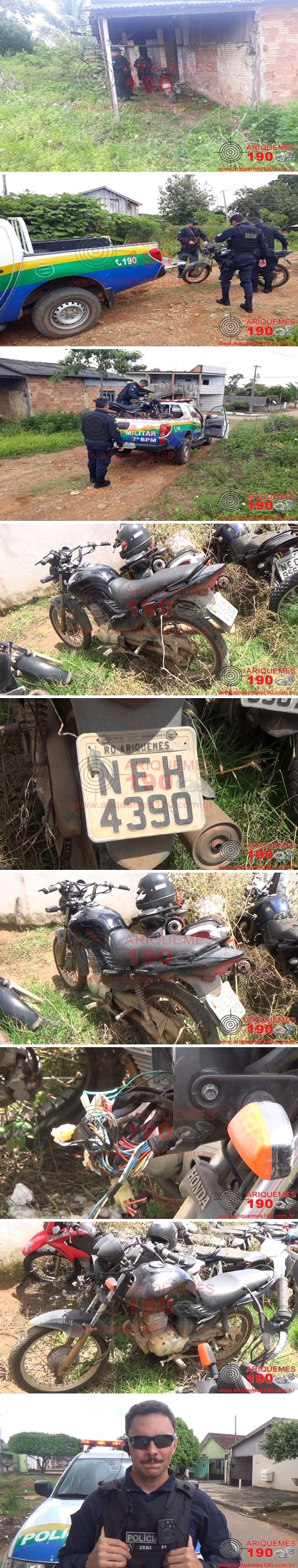 Por volta das 10h12min deste domingo, dia 16/02, a guarnição da Polícia Militar foi acionada via Central de Operações a comparecer na Rua Albino Henrique, Bairro Marechal Rondon em Ariquemes, pois segundo informações davam conta de que um elemento teria abandonado uma motocicleta Honda/Fan150cc de cor preta, e em seguida se evadiu do local a pé. Diante das informações os policiais se deslocaram até o referido endereço, onde puderam constatar a informação recebida, encontrando a motocicleta abandonada em um matagal, a qual estava com a fiação exposta e o farol danificado, onde possivelmente o elemento teria feito uma ligação direta. Em consulta veicular ao sistema do Departamento Estadual de Trânsito (DETRAN), foi verificado que o veículo teria sido furtado na madrugada do mesmo dia, conforme Ocorrência número 30.544/2020. Diante dos fatos a motocicleta foi conduzida até a Unidade de Segurança Pública (UNISP), onde foi registrado o Boletim de Ocorrência Policial sob n° 30.589/2020 para que sejam tomadas as providências cabíveis ao fato.