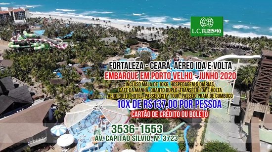 A LC Turismo está com um pacote incrível para você e sua família viajar e se divertir. Você irá viajar para Fortaleza - Ceará com aéreo ida e volta, embarque em Porto Velho no mês de Junho de 2020. Incluso mala de 10 kg, hospedagem com 5 diárias em quarto duplo, café da manhã incluso, transfer ida e volta aeroporto hotel e mais um Passeio City Tour pela praia de Cumbuco. Tudo isso e muito mais por apenas 10x de R$137,00 por pessoa. O que você está esperando? Venha já adquirir o seu pacote. Aceitamos todos os tipos de cartões, ou se preferir pague no Boleto Bancário. A LC Turismo está localizada na Avenida Capitão Sílvio, anexo ao Terminal Rodoviário; Telefone 3536-1553.