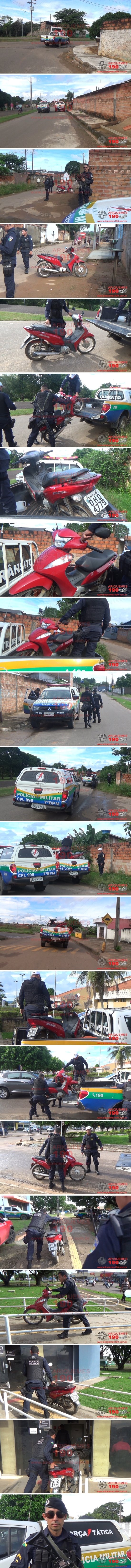 Por volta das 15h50min desta sexta-feira, dia 28/02, a guarnição da Polícia Militar foi acionada a comparecer na Rua Ares, Setor 09 em Ariquemes, pois segundo informações uma motoneta Honda/Biz teria sido abandonada no local. Diante dos fatos imediatamente a guarnição se deslocou até o referido endereço, onde os policiais puderam constatar a veracidade das informações, sendo que a motoneta estaria abandonada. Ao realizarem uma consulta veicular ao sistema do Departamento Estadual de Trânsito (DETRAN), pode-se constatar que a mesma seria produto de roubo ou furto ocorrido no Bairro BNH. Diante dos fatos a mesma foi conduzida até a Unidade de Segurança Pública (UNISP), onde a ocorrência número 38.612/2020 foi registrada para que sejam tomadas as providências cabíveis ao fato.