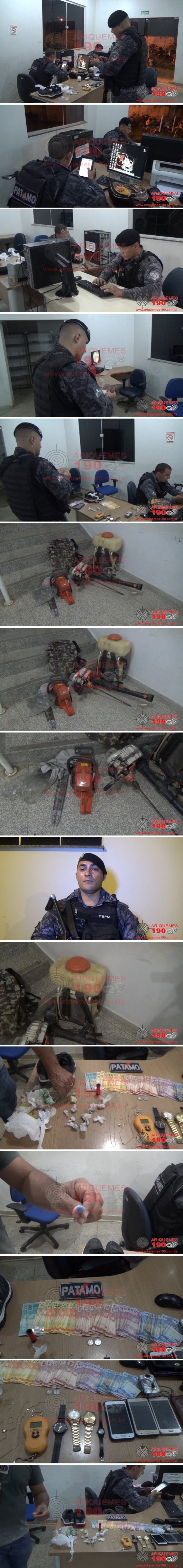 A guarnição da Polícia Militar Patamo, realizava patrulhamento pela Av. Perimetral Leste com 1º Rua do Setor 10 de Ariquemes, nesta sexta-feira por volta das 19h, quando avistaram um elemento saindo de uma residência conduzindo uma bicicleta, mas ao ver a viatura, mudou de direção bruscamente, atitude que chamou a atenção da guarnição. Ao se aproximar do indivíduo, foi visualizado quando ele se desfez de algo que estava em seu bolso, laçando o objeto de cor azul na Rua, e ao ser inspecionado o objeto, viu que se tratava de um “pino de pedra”, aparentando ser Crack, embalado em plástico de cor azul. Os PMs prosseguiram com a abordagem, revista pessoal e conversa com o elemento abordado, e ao ser questionado sobre a droga, o mesmo ficou alterado e respondeu mal ao ser questionado de onde moraria, afirmou “que da casa que saiu”. Sobre a droga marginal alegou que comprou na praça e que na casa não teria nada, mas os PMs observaram que o portão estava aberto, os quais foram recepcionados por uma pessoa, e ao entrarem no quintal, visualizaram duas pessoas que correram pelo interior da casa e, segundos depois, “pinos de pedra” semelhantes ao que foi encontrado na posse do abordado, foram lançados da janela de um dos cômodos da casa ao chão de um corredor, entre o muro e a casa. Um policial comunicou a movimentação ao restante da equipe, que adentrou às pressas ao interior da residência, onde ouviu-se o som de descargas de água no banheiro. Na casa estava uma mulher identificada como sendo N.L.A., e em um dos quartos foi localizado o rapaz A.F.S.S., que ao serem questionado o porquê eles correram para dentro dos cômodos da casa, negaram os fatos. Também foi perguntado sobre quem seria o dono da casa, porém nenhum dos três assumia a propriedade. A senhora N. afirmou que é casada com o rapaz A., e alegavam que estavam passeando na casa do irmão, A.L.A., mas o elemento A.L.A. dizia estar visitando a irmã, N. No interior da casa, em revista preliminar, foram encontradas algumas porções de entorpecente aparentando ser Maconha e Crack, e materiais para embalo e confecção de porções. Indagados sobre os materiais e drogas, os envolvidos alegaram que a droga era para uso próprio e os materiais para a conservação da mesma. Sobre os entorpecentes encontrados no corredor externo da casa, pois foram visto por um dos policias, sendo jogados para fora, negaram tal prática. Diante da dissimulação para negarem os fatos presenciados e contradição nas narrativas apresentadas por eles, foi dada voz de prisão aos conduzidos. Com a possibilidade de haver mais drogas na casa, os PMs acionaram a guarnição Bravo e o Canil do 7º BPM, que marcou presença com K-9 Belinha, cão farejador que entrou em ação e no quarto da casa, onde estava A., foi localizada dentro de um tênis, juntamente com plásticos recortados pra embalo, de cor azul e cor branca, uma pedra de Crack de tamanho médio, com vestígios de estar sendo partida em unidades menores para confecção, como em vários outros pontos da casa foi localizado mais droga. Enquanto os PMs atuavam na ocorrência, a Central do 7º BPM recebeu telefonemas anônimos informando que na casa da namorada de A., teriam objetos de roubo ou receptação como motosserra, pulverizador, furadeira outros objetos. A equipe da Patrulha Bravo esteve no local e em contato com a namorada de A., a Sra. C., esta respondeu que seu namorado havia deixado esses objetos na casa. Mediante as constatações os quatro conduzidos foram apresentados na Unidade de Segurança Pública (UNISP) juntamente com os objetos apreendidos, os entorpecentes, material de confecção dos entorpecentes, dinheiro (quantia disposta em notas miúdas, característico da negociação comercial) e demais objetos de procedência duvidosa, onde foi efetivado o registro do Boletim de Ocorrência Policial sob n° 38.7047/2020, para a tomada de medidas necessárias. Atuaram na ocorrência as guarnições: PATAMO, PATRULHA BRAVO (CB PM ALENCAR, SD JAMES E SD GUIMARÃES) e a equipe do CANIL (CB PM GREFFE, SD ZANIOLI e a K-9 BELINHA).