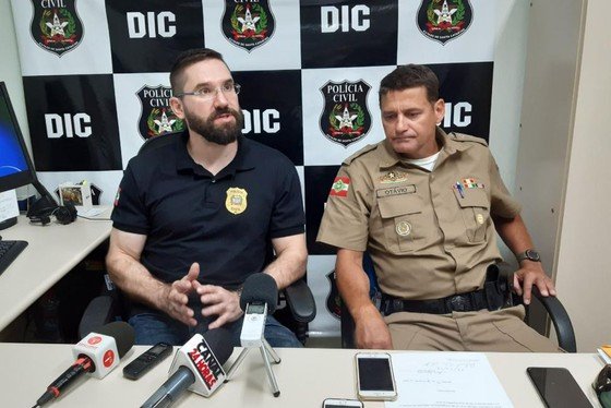 Em coletiva de imprensa na tarde desta sexta-feira (28), o delegado Alex Bonfim Reis, responsável pela Divisão de Investigação Criminal (DIC) da Polícia Civil de Brusque; e o Tenente coronel PM Otávio Manoel Ferreira Filho, comandante do 18º Batalhão de Polícia Militar (18º BPM) de Brusque trouxeram o balanço de uma grande operação contra o tráfico de drogas realizada no município nesta manhã.