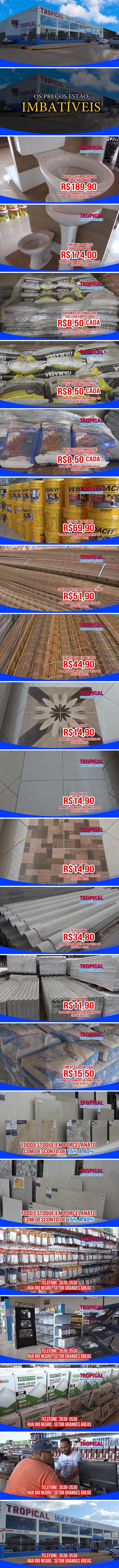 Promoção somente para pagamento em dinheiro ou cheque a vista. Tropical Materiais Para Construção. Rua Rio Negro, n° 3934. Setor de Grandes Áreas. Telefone: 3536-3530.