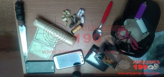 O fato aconteceu no município de Cujubim e teve início através da denuncia da vítima, que compareceu à Unidade de Segurança Pública (UNISP) alegando que teria sofrido lesões leves de seu ex namorado, além de ter seu aparelho celular quebrado pelo mesmo e desejava representa-lo por isso. Mas os infratores não contavam que estariam prestes a levar um duro golpe da Polícia, pois após os relatos dos fatos a guarnição se deslocou ao local do ocorrido, sendo em uma residência localizada à Rua Tico Tico, Setor 07 em Cujubim, onde ali chegando já avistaram os portões abertos e uma intensa movimentação de pessoas no interior da casa, sendo que três elementos, ao avistarem a guarnição tentaram empreender fuga pulando uma cerca de madeira aos fundos, mas receberam voz de parada e foram detidos. Ao questionar quem seria proprietário do local, o infrator menor de 17 anos de idade, já conhecido pelos policiais pela prática de vários crimes, se apresentou como sendo responsável pelo local e acompanhou os policiais em uma revista, onde no interior da casa foram encontrados 04 invólucros de substância entorpecente aparentando ser Maconha, 02 invólucros de substância entorpecente aparentando ser Cocaína e 07 invólucros de substância entorpecente aparentando ser Crack. Também foram encontrados no local alguns objetos utilizados para embalar drogas como: 1 rolo de papel filme e 01 carretel de linha, na cor amarela. No mesmo local onde foram encontrados os primeiros invólucros de droga, também foram encontrados 02 celulares Samsung de cor escura e vários objetos de procedência duvidosa. Ao serem questionados sobre os produtos ilícitos e duvidosos, os marginais alegaram que era para uso próprio. Mediante a fundada suspeita de prática do crime de Tráfico de Drogas e Lesão Corporal e Danos, relatados anteriormente, os três elementos foram apresentados na UNISP, para registro do Boletim de Ocorrência Policial sob n° 44.262/2020, para providências da autoridade policial plantonista.