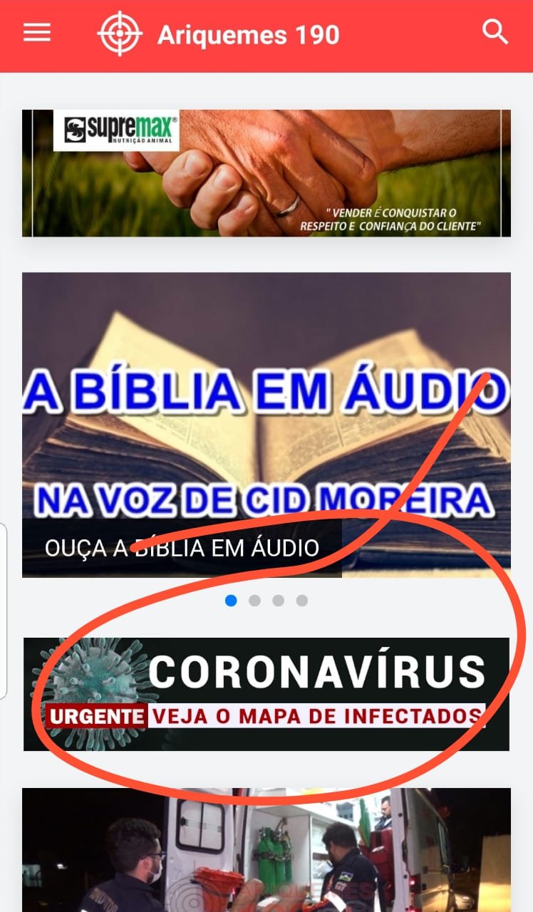 O Site Ariquemes190 disponibilizou em sua página inicial um link que leva seus internautas a um mapa, o qual disponibiliza informações sobre o Coronavírus em tempo real. O mapa divulga dados de quantidade de infectados, casos suspeitos e casos descartados, além da quantidade de óbitos confirmados. O mapa pode ser acessado de computador Desktop, Tablet ou Celular.