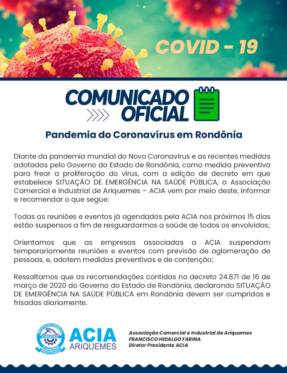 ARIQUEMES: Comunicado ACIA - Coronavírus