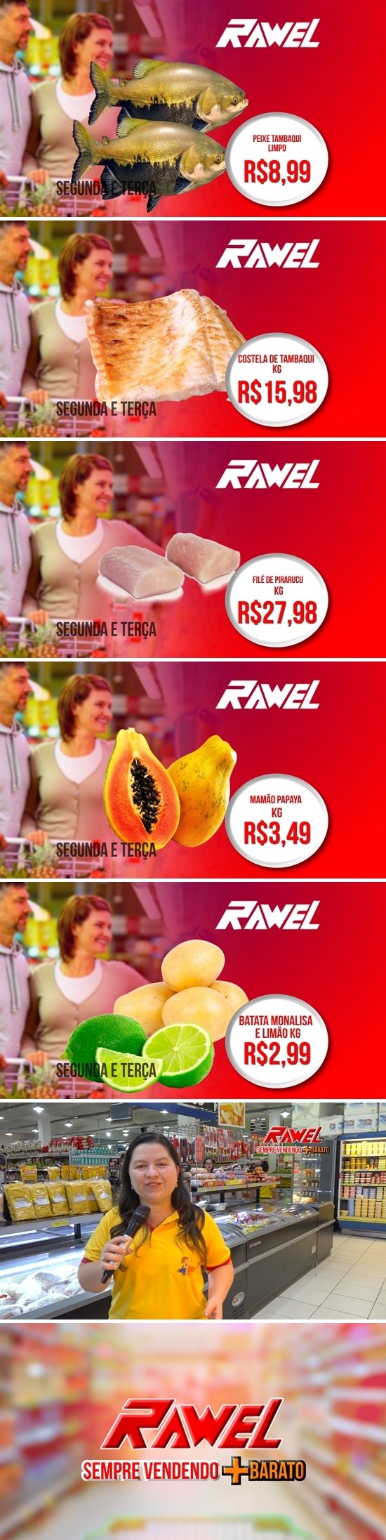 Mais baratos todos os dias é só no Rawel. Na Avenida Jamari, em frente à Praça da Vitória.