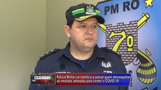 Ao participar do Programa Bronca da Pesada (Canal 35.1), Major Robinson, Comandante do 7º BPM, parabenizou a sociedade Ariquemense por ter entendido a necessidade de ficarem em suas casas para evitar a proliferação do Coronavírus. Major Robinson enfatizou que a PM está autuando para que seja cumprido o Decreto Governamental 24.887, de 20 de março de 2020, referente às restrições no funcionamento de cinemas, teatros, bares, clubes, academias, banhos/balneários, boates, restaurantes, lanchonetes e outros estabelecimentos comerciais e está sendo desenvolvido rigorosamente pela Polícia Militar do Estado, visando resguardar a saúde da população, bem como adotar todas as medidas e providências necessárias para fins de prevenção e de enfrentamento à pandemia causada pelo Coronavírus. Veja o vídeo: