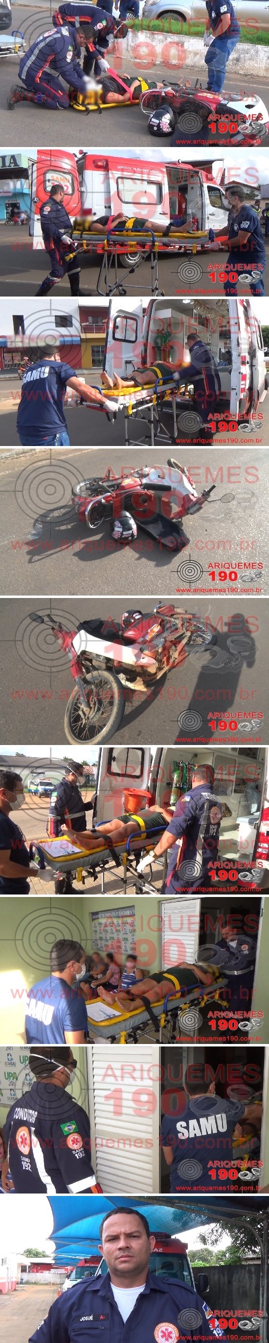 O fato foi registrado pela Central do Serviço de Atendimento Móvel de Urgência (SAMU), quando foi acionada a enviar sua equipe de socorristas à Av. Guaporé, Setor 05 em Ariquemes, onde teria ocorrido um acidente entre duas motos e uma mulher estaria ferida. Os socorristas se deslocaram rapidamente ao local, onde ali chegando encontraram a vítima caída ao solo, consciente, orientada, verbalizando, apresentando algumas escoriações em membros inferiores e queixando-se de fortes dores na região do quadril. Os procedimentos pré-hospitalares foram realizados no local, onde posteriormente a vítima foi encaminhada à Unidade de Pronto Atendimento (UPA) para cuidados médicos especializados. No local populares informaram que ambos os veículos vieram a colidir, sendo uma motocicleta e uma moto, mas ninguém soube dar detalhes de como teria ocorrido o fatídico.