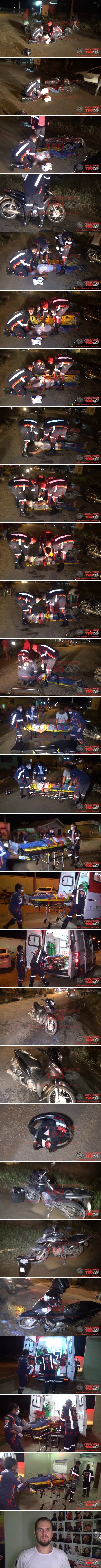 Na noite desta quarta-feira, 01/04 por volta das 19h20m, a Central do Serviço de Atendimento Móvel de Urgência (SAMU) foi acionada a deslocar sua equipe de socorro na Av. Perimetral Leste com Av. Capitão Sílvio em Ariquemes, pois no local teria ocorrido um acidente de trânsito com vítima ferida. Imediatamente se deslocou ao local a equipe da Unidade de Suporte Avançado (USA), onde ali chegando avistaram a vítima, um rapaz que estava caído ao solo apresentando várias lesões pelo corpo em decorrência do impacto. Rapidamente foram realizados os procedimentos de primeiros socorros à vítima, que em seguida foi imobilizada em prancha rígida, com colar cervical e Red Block para posterior condução à Unidade de Pronto Atendimento (UPA) para avaliação da equipe médica de plantão. Ao conceder entrevista à equipe de reportagens do site Ariquemes190 e Canal 35.1 Digital, o Médico Dr. Luciano Fogaça relatou que a vítima estava consciente, orientada, verbalizando, apresentava sinais de embriaguez alcoólica, onde a própria vítima comunicou ter ingerido bebida alcoólica, não apresentava sinais de fratura aparente, somente estava um pouco letárgico, em consequência da embriaguez e aparentemente sem lesões importantes. Populares informaram à nossa equipe de reportagens que a colisão teria ocorrido entre a motoneta Honda/Biz de cor preta com placa de Jaru/RO, onde estava a vítima que foi socorrida pelo SAMU, e a motocicleta Honda/XRE 190 de cor verde com placa de Ariquemes, a qual o condutor obteve apenas escoriações leves em decorrência da queda e dispensou o atendimento médico.