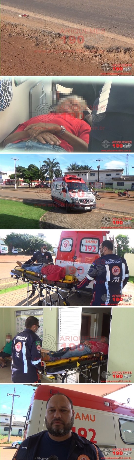 O fato ocorreu na manhã desta quinta-feira, 02/04, por volta das 07h45m, quando a Central do Serviço de Atendimento Móvel de Urgência (SAMU) recebeu um chamado a se deslocar na BR-364, Km-504 sentido Jaru, há aproximadamente 12 km do município de Ariquemes, pois no local um motociclista teria sofrido uma queda e havia possibilidade de a vítima estar com fraturas. Imediatamente a equipe de socorro se deslocou com a Unidade de Suporte Avançado (USA), onde ali chegando, os socorristas encontraram a vítima, um idoso de 70 anos de idade, o qual apresentava apenas escoriações leves. Os procedimentos pré-hospitalares foram realizados no local, onde posteriormente o idoso foi entregue na Unidade de Pronto Atendimento (UPA) para avaliação da equipe médica de plantão. Ao conceder entrevista à equipe de reportagens do site Ariquemes190 e Canal 35.1 Digital, o Médico Dr. Franklin relatou que a vítima estava consciente, orientada, verbalizando e não possuía sinais aparentes de fraturas. Dr. Franklin relatou que, segundo informações da vítima, trafegava a rodovia em sua motocicleta, quando se deparou com um enorme buraco na pista, sendo que em sentido contrário vinha uma carreta, momento em que, ao tentar desviar para o lado oposto, perdeu o controle da direção do veículo e veio a cair ao solo, ocasionando a colisão.