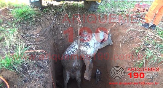 ARIQUEMES: Corpo de Bombeiros resgata touro de fossa abandonada em terreno baldio no Zona Sul