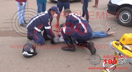 ARIQUEMES: Jovem fica ferida ao cair de moto em rotatória na Av. JK com Jamari