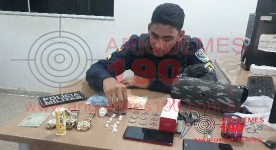Através de denúncia anônima, e em um belíssimo trabalho das Patrulhas Delta, com apoio da Alfa, lograram êxito em fechar mais uma Boca de Fumo em Ariquemes. O fato ocorreu na madrugada desta terça-feira, 28/04 por volta das 5h30m, quando a guarnição da Polícia Militar Patrulha Delta, composta pelos policiais: CB Ralilson, SD Vieira, recebeu denúncia anônima dando conta que na Rua Cora Coralina, Setor 11, em uma residência, haviam três elementos que estavam vendendo substâncias entorpecentes. De imediato os policiais se deslocaram ao local para averiguar e, ao chegar de frente à residência informada, ao avistar a viatura, o elemento T.L., 24 anos, tentou se evadir, mas foi imobilizado pelos policiais. Ao realizar busca pessoal ao suspeito, foi localizada com o abordado a quantia de R$ 107,45 em espécie. Ao ser questionado sobre a referida venda de substância entorpecente, o mesmo informou que só recebia o dinheiro, e a droga localizava-se em outra residência. Imediatamente os policiais se deslocaram à tal residência, onde foi feito o cerco nesta casa com o apoio da Patrulha Alfa, composta pelos policiais CB Erique, SD Anderson e SD Anderson Godoy, e ao entrar no local foi avistado pelos policiais dois elementos, sendo L.P.F., 19 anos e um menor de 17 anos de idade, que tentaram empreender fuga, mas foram imobilizados. Ao realizar buscas no interior da casa foi localizado dentro de um recipiente de vitamina C, nove (09) invólucros de substância aparentando ser Crack. No local ainda haviam vários objetos, sendo (02) aparelhos celulares, um LG preto e outro Samsung vermelho, (02) caixas de som portátil, (01) Perfume da Boticário Linda, (03) relógios, sendo um Invicta, um Fóssil e um Stainless, que os marginais não souberam afirmar de quem pertencia. Também foram localizados utensílios para embalar a droga como: tesoura, faca, linha e sacola. Diante dos fatos os envolvidos e os objetos, bem como a substância entorpecente foram apresentados na Unidade de Segurança Pública (UNISP), onde foi registrado o Boletim de Ocorrência Policial sob n° 64.334/2020, para a devida tomada de providências cabíveis.