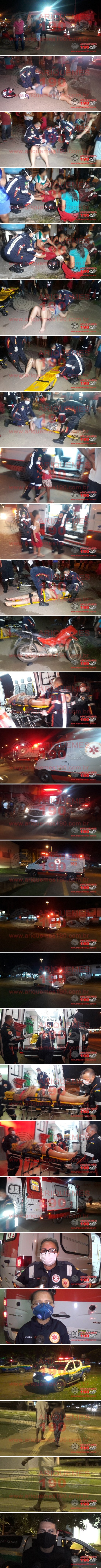 O fato ocorreu na Rua Anísio Teixeira, no cruzamento com a Rua Manoel Bandeira, Setor 11 em Ariquemes, onde segundo informações preliminares repassadas à Central do Serviço de Atendimento Móvel de Urgência (SAMU), que recebeu o chamado por volta das 22 horas, informando que um veículo tipo automóvel teria atropelado uma motociclista, onde no local teriam três vítimas feridas. Imediatamente se deslocaram ao local do fato a Unidade de Suporte Básico (USB) e a Unidade de Suporte Avançado (USA) com suas respectivas equipes de socorristas, onde ali chegando puderam constatar a veracidade das informações, avistando uma mulher caída ao solo na via, a qual queixava-se de fortes dores pelo corpo, especialmente na região da coluna. Ainda no local, duas crianças, que já estavam sentadas, as quais apresentavam algumas escoriações leves. A equipe da USA atendeu as duas crianças, onde ambas adentraram andando na Unidade de Saúde. Já a mulher, que apresentava um quadro mais importante, recebeu os procedimentos pré-hospitalares no local, onde foi imobilizada em prancha rígida, com colar cervical e red block e posteriormente todas as vítimas foram entregues na Unidade de Pronto Atendimento (UPA) para receberem atendimento médico especializado. Uma guarnição da Polícia Militar também esteve no local e ao levantar informações sobre o ocorrido, os policiais foram informados por populares que a mulher trafegava com o veículo Honda/Pop de cor vermelha com placa de Ariquemes/RO, pela Rua Manoel Bandeira sentido Avenida JK, quando um veículo Fiat/Fiorino com placas também de Ariquemes/RO, trafegava na Rua Anísio Teixeira sentido Avenida Guaporé, quando no cruzamento com a Rua Manoel Bandeira houve a colisão transversal com a Pop. O condutor do Fiorino foi localizado pelos policiais próximo a rotatória das Avenidas Machadinho com Tancredo Neves, onde de pronto confessou que teria se envolvido no acidente e que seria menor. Mediante o ocorrido o condutor foi apresentado na Unidade de Segurança Pública (UNISP), acompanhado com uma pessoa responsável, onde foi registrado o Boletim de Ocorrência Policial sob n° 63.541/2020, para posterior providências necessárias.