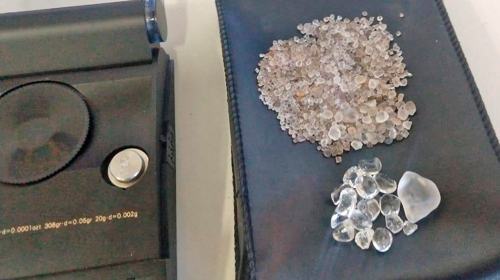 Os agentes da PRF então realizaram uma revista minuciosa no veículo e encontraram as pedras preciosas, além de um anel com pedra preciosa. No carro também foram encontrados instrumentos de análise e seleção de diamantes. Para a polícia, os suspeitos disseram que não sabiam que as pedras estavam no carro.