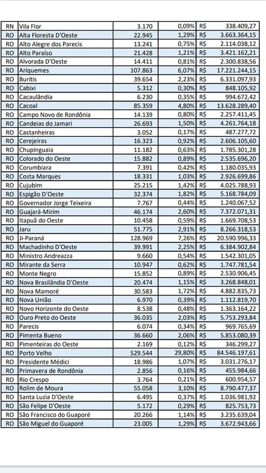 O município de Cujubim, com uma população estimada (ano de 2019), segundo o IBGE em 25.215 habitantes irá receber nos próximos quatros meses um montante de 4.025.788,93 para enfrentar a crise causada pela pandemia do novo coronavírus.