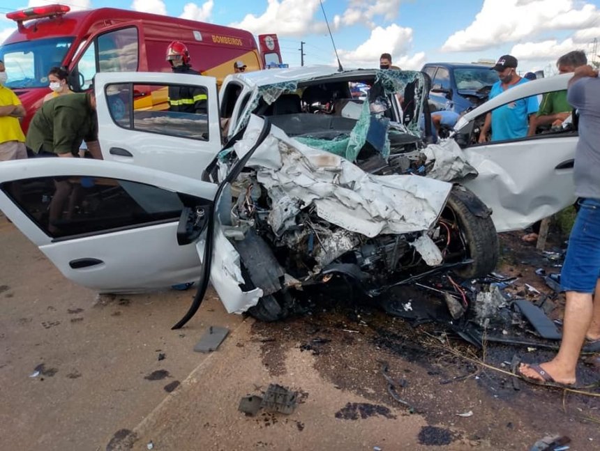 Quatro pessoas, sendo pai, mãe e dois filhos, morreram em um acidente na tarde deste domingo na MT-208, próximo a Alta Floresta. A colisão frontal entre uma Amarok preta e uma Sandero branco deixou a frente dos veículos completamente destruídas. A família que morreu seguia na Sandero. De acordo com as informações, o motorista da Amarok teria tentado ultrapassar uma carreta e acabou atingido o outro veículo.