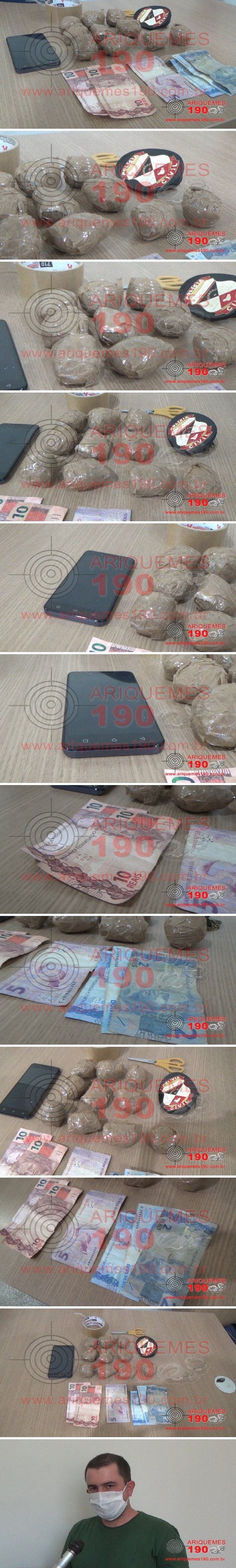 A força policial no município de Ariquemes, têm intensificado os trabalhos no combate ao comércio de produtos ilícitos entorpecentes na região, e tem logrado êxito em desmantelar vários pontos de comércio de droga. Na manhã dessa terça-feira, 05/05, uma ação da equipe de investigadores da Polícia Civil, comandada pelo Delegado de Polícia Dr. Ricardo Rodrigues, realizaram deslocamento à Rua Santa Catarina, Setor 5 em Ariquemes, com intuito de averiguar denúncia de Tráfico de Drogas naquele local. Ali chegando, os policiais realizaram contato com o proprietário da residência, o qual autorizou a entrada no local e a realização de buscas. Como a denuncia apontava para o filho do proprietário, as buscas foram realizadas no quarto de I.S.O., 40 anos, sendo encontrada no guarda roupas, embaixo de uma gaveta, a quantia de 10 (dez) invólucros de substância aparentemente Cocaína. Foi encontrado dentro do quarto 01 rolo de fita crepe, 01 tesoura e R$ 31,00 em espécie. Diante do contexto, o conduzido juntamente com os objetos foram apresentados na Unidade de Segurança Pública (UNISP), onde foi efetivado o registro do Boletim de Ocorrência Policial sob n° 67.118/2020, para a devida tomada de providências cabíveis.
