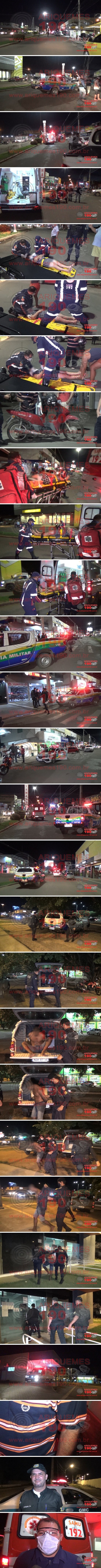 O fato ocorreu aproximadamente às 18h40m dessa terça-feira, 13/05, quando as Centrais do Serviço de Atendimento Móvel de Urgência (SAMU) e Polícia Militar, assim como uma equipe da Guarda Municipal, que estava próxima ao local do fato, foram informados de um possível acidente de trânsito ocorrido na Av. Canaã onde uma mulher estaria desacordada. Rapidamente as equipes se deslocaram ao loca, onde ali chegando constataram que uma mulher estava caída ao solo em meio a via, já consciente, um pouco desorientada em decorrência da queda da motocicleta e ter colidido a cabeça contra o solo. No local populares também teriam detido um homem, o qual estava totalmente desorientado e segundo informações teria dado causa a situação. Ao levantar informações do que de fato teria ocorrido, pessoas que presenciaram a cena informaram aos policiais que a mulher trafegava a via na motocicleta como passageira, tendo seu esposo como condutor, quando de repente, sem nenhum motivo aparente, o homem invadiu a via estando totalmente transtornado e fora de sua sanidade mental, aparentando estar sob efeito de alguma substância e desferiu um soco na face da vítima, a qual caiu a solo desacordada. Ainda segundo populares, o elemento agressor seria ex-apenado e teria deixado a Unidade Prisional há dois dias. Os socorristas do SAMU realizaram todos os procedimentos pré-hospitalares ainda no local, considerando o duplo trauma sofrido pela vítima, primeiro pela agressão física e posteriormente pela queda e o impacto ao solo, onde a mesma foi imobilizada em prancha rígida e colar cervical, sendo posteriormente encaminhada à Unidade de Pronto Atendimento (UPA) para ser avaliada pela equipe médica de plantão. O elemento foi encaminhado e entregue na Unidade de Segurança Pública (UNISP), onde foi registrado o Boletim de Ocorrência Policial sob n° 70.442/2020, ficando o mesmo à disposição da autoridade policial plantonista sob a acusação da prática de Lesão Corporal em flagrante.