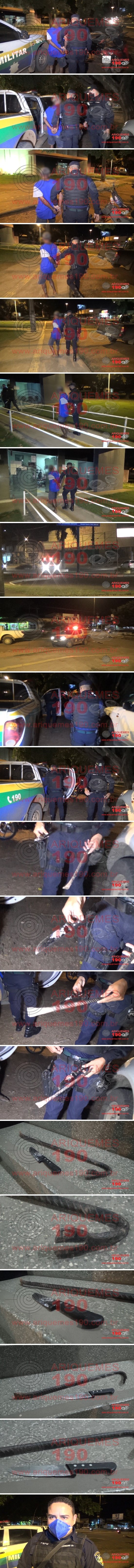 O fato ocorreu no início da noite de terça-feira, 12/05, na área residencial da vila do Garimpo Bom Futuro, distrito do município de Ariquemes. A Polícia Militar tomou conhecimento do ocorrido quando a vítima e testemunhas procuraram a Unidade de Polícia da localidade, onde a vítima, que encontra-se no 4° mês de gravidez, contou que estava ela em sua casa juntamente com seu filho de apenas dois anos de idade, quando em dado momento ouviu um ruído advindo da janela de seu quarto. Sem saber inicialmente do que se tratava, se manteve trancada no interior de seu recinto, contudo, em seguida visualizou o elemento, que é seu vizinho e não mantém nenhum vinculo com a vítima, forçando a porta da frente com um “pé de cabra” violando e danificando o portal de sustentação até adentrar na residência. A vítima percebeu que o marginal estava visivelmente com sintomas de embriaguez alcoólica ou/e sob efeitos de alguma substância entorpecente, e ainda, empunhava uma faca, dizendo que iria matá-la. Segundo a mulher, o motivo de sua ira seria ciúmes, suspeitando que a vítima estivesse em casa com um namorado, coisa que não ocorreu. Ao adentrar na residência o elemento foi em direção à vítima empunhando a faca e a todo momento dizia que iria matá-la. A mulher, temendo por sua vida e a de seu filho, reagiu contra o agressor o empurrando para fora de sua residência e gritando por socorro, foi neste momento que uma vizinha ouviu o clamor e chamou outra vizinha para ajudá-la. Quando as testemunhas chegaram no quintal da casa da vítima visualizaram o agressor em cima da mulher, caída ao solo tentando desferir golpes com o objeto perfurante. As testemunhas se aproximaram e conseguiram retirar o agressor de cima da vítima, salvando-a de morte. A mulher sofreu uma lesão (corte) no abdômen feita à faca pelo agressor durante a luta corporal. De posse de tais informações os policiais se deslocaram à casa do agressor e com êxito conseguiram localizá-lo, dando voz de prisão pelo crime de Tentativa de Feminicídio. Mediante as constatações os policiais conduziram vítima e infrator à Unidade de Segurança Pública (UNISP) em Ariquemes para registro do Boletim de Ocorrência Policial sob n° 70.458/2020, onde foi constatado que o elemento já possui passagem anterior pela prática de Tentativa de Homicídio no Estado de Minas Gerais.