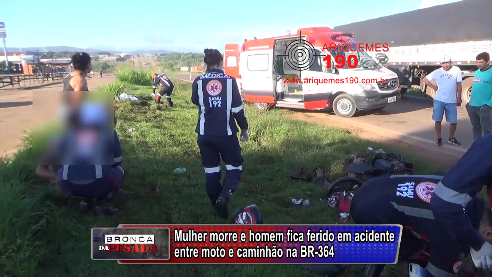 ARIQUEMES: Vídeo - Caminhão passa por cima de mulher na BR-364 – Vítima estava com marido na motocicleta