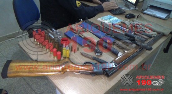 O fato que chamou a atenção dos policiais aconteceu na 6° Rua do Bairro Rota do Sol em Ariquemes, quando a guarnição foi acionada pela Central de Operações a comparecer no local, pois populares teriam avistado um homem efetuando disparos com uma arma de fogo. Imediatamente a guarnição se deslocou ao endereço indicado, onde ao se aproximar os policiais já ouviram mais disparos, momento em que avistaram o elemento G.R., 52 anos, com uma espingarda na mão apontando para o alto. Usando de muita cautela os policiais começaram a verbalizar para que o homem largasse a arma, e após várias ordens serem proferidas, o mesmo colocou a arma no chão, onde pode ser constatado que a referida arma estava carregada com um cartucho, pronta para o uso. Ao ser realizada revista pessoal ao homem, nada de ilícito fora localizado. Ao ser questionado qual o motivo dos disparos, o elemento relatou que fazia parte de um grupo de Sem Terras e que estava sendo perseguido, fato que não conseguiu dar maiores explicações. Ao ser realizado revista em sua residência, foi localizado em cima da cama 02 cartuchos deflagrados da referida espingarda, 13 cartuchos deflagrados e mais 01 intacto, totalizando 02 cartuchos intactos de calibre .12, 02 cartuchos deflagrados de cal .20, uma cápsula deflagrada calibre .38, 01 cápsula deflagrada calibre .32 e uma munição intacta calibre .380. Também fora localizado um bornal utilizado para caça e um cinto porta cartuchos, 02 frascos contendo pólvora e chumbo, e 02 buchas utilizadas para recarregar os cartuchos, 03 canos que o conduzido afirmou que seriam utilizados para fabricar armas artesanais calibre .16. Ainda dentro da residência foram localizados um total de 08 armas brancas, entre elas facas e facões, os quais o elemento afirmou que utilizava quando ia para a região de mata, a quantia de R$ 915,00 (Novecentos e Quinze Reais) dentro de uma carteira junto com os documentos pessoais e cartões. Após as constatações, todo o material foi apreendido e apresentado, juntamente com o elemento na Unidade de Segurança Pública (UNISP), onde foi registrado o Boletim de Ocorrência Policial sob n° 71.505/2020, para a tomada de providências por parte da autoridade policial.