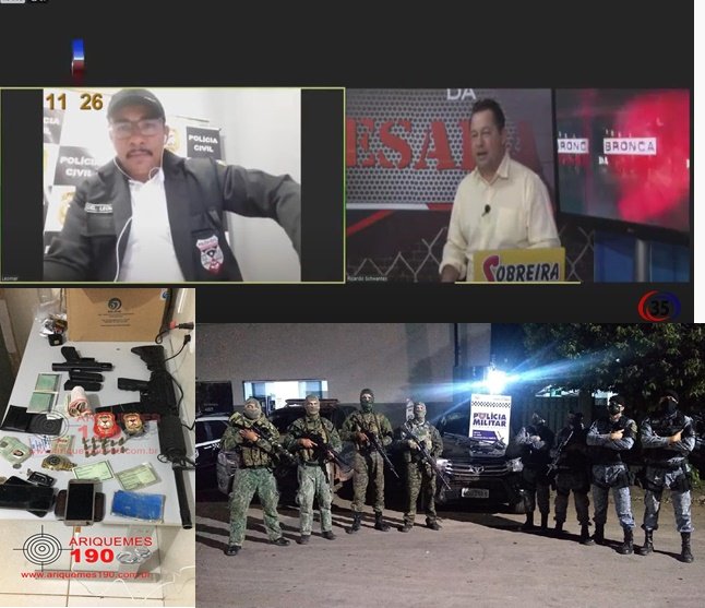 O Delegado de Polícia Dr. Leomar (Buritis-RO) participou do Programa Bronca da Pesada (Canal 35.1), e relatou toda ação que resultou na desarticulação de uma quadrilha especializada em roubo de aviões e assaltos à propriedades rurais em Rondônia, Mato Grosso e Pará. Dois homens e uma mulher foram presos e uma pistola Glock, um simulacro de fuzil e munições foram apreendidos com os suspeitos. Dr. Leomar agradeceu o apoio que recebeu do Diretor Geral da Polícia Civil de Rondônia, Dr. Samir Fouad Abboud, que não mediu esforços em apoiar e dar as condições para que essa quadrilha fosse desarticulada. Após o roubo de um caminhão e uma caminhonete da Prefeitura de Buritis, Dr. Leomar e Dr. Lucas, juntamente com investigadores, descobriram que uma pessoa da região do Vale do Jamari passava as informações para a quadrilha realizar os roubos, esse elemento foi preso em Buritis. A quadrilha se deslocava para o Mato Grosso quando o Delegado Dr. Leomar saiu no rastro dos elementos sem que eles soubessem, por quatro dias. As Polícias do MT já haviam sido informadas, sendo mobilizada a “Operação Beiradeiros II”, que envolveu: Polícia Militar e Polícia Judiciária Civil de Mato Grosso, Batalhão Rotam e Bope da PMMT. Ao chegarem no Guarantã do Norte-MT, os suspeitos, ao perceberem a aproximação dos policiais, tentaram fugir efetuando vários disparos de arma de fogo contra os policiais, mas foram presos em flagrante. Com eles, os policiais apreenderam uma pistola Glock 9mm, dois carregadores de arma de fogo e 16 munições. Um dos detidos, que estava junto com a mulher na caminhonete acabou confessando que havia escondido um simulacro de fuzil M16 antes de sair de Guarantã do Norte. Uma caminhonete com placa de Teixerópolis, município rondoniense, foi apreendida na ação. A Polícia localizou o simulacro e prendeu os três suspeitos por porte ilegal de arma de fogo, associação criminosa, resistência e desobediência. Novas prisões devem acontecer a qualquer momento.
