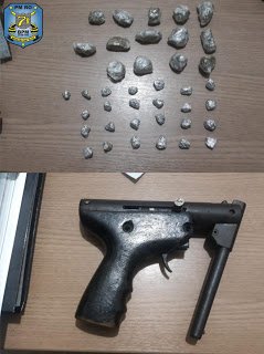 Mas no local os policiais encontram um indivíduo, de 24 anos, e com ele 39 porções de drogas, sendo 14 semelhantes a maconha e 25 a crack, objetos utilizados na embalagem de drogas, e uma pistola de pressão adaptada para calibre. O envolvido foi preso e apresentado à delegacia, onde foram tomadas as medidas necessárias ao caso.