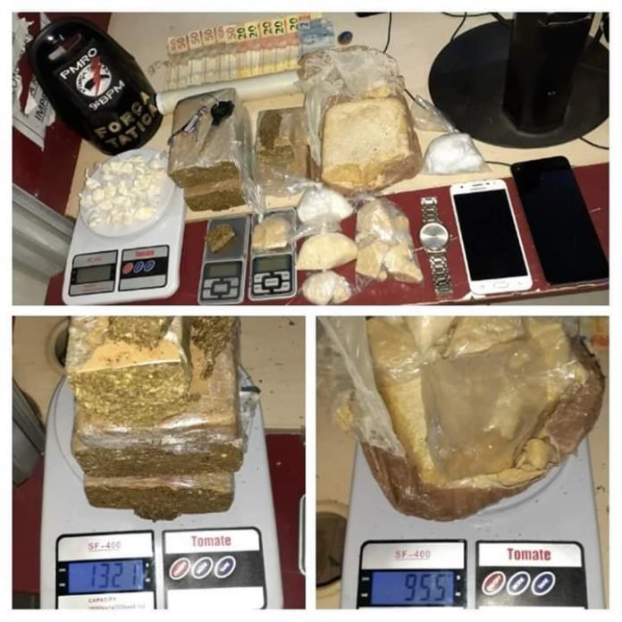 Com o segundo casal, foram encontrados outros tabletes de maconha e crack, celulares e uma o balança de precisão e material para endolar a droga.