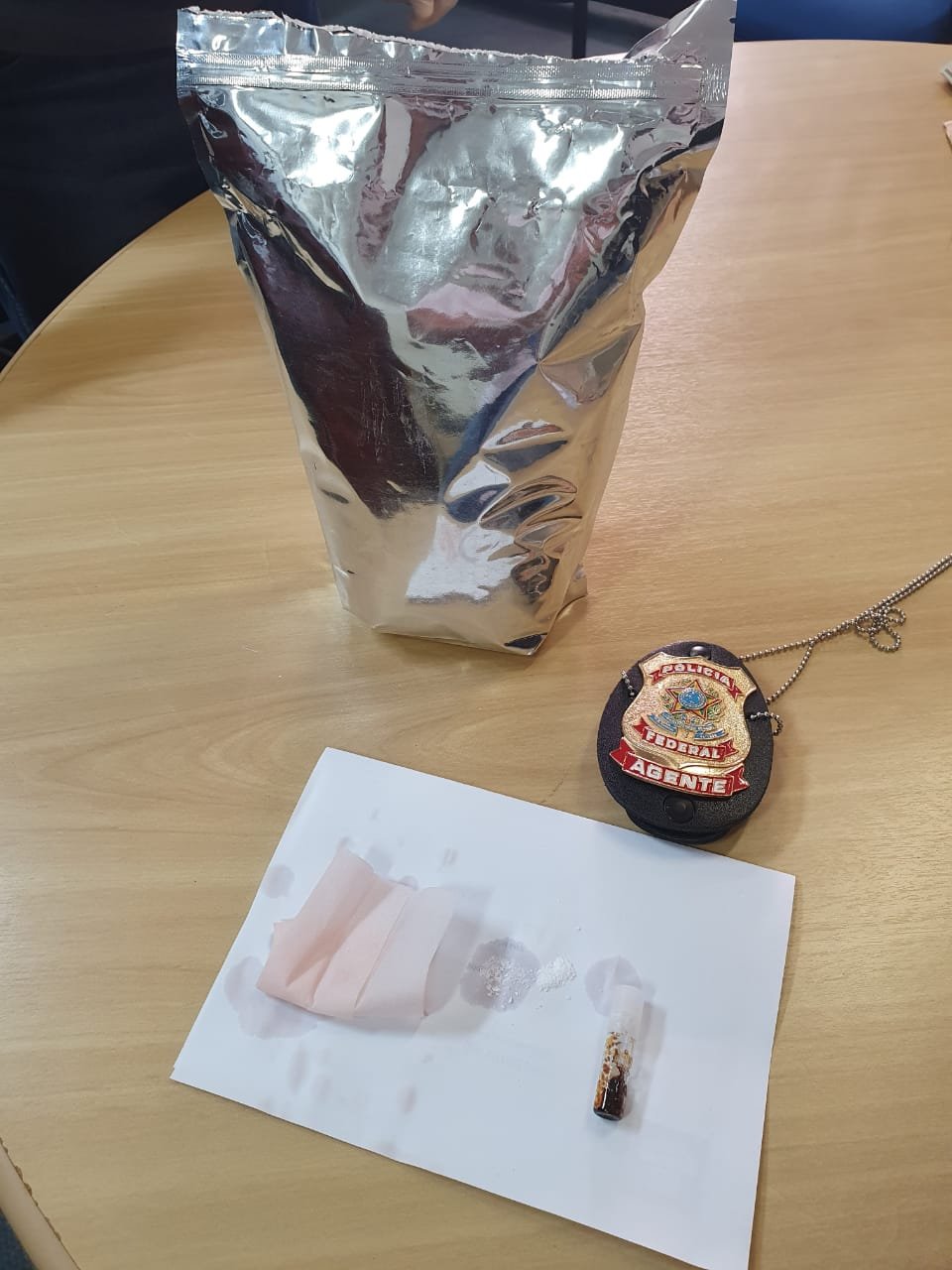 A substância apreendida, que pesou cerca de um quilograma, após os testes preliminares acusou ser droga sintética possivelmente MDMA, caracterizando-se por ser um pó branco.