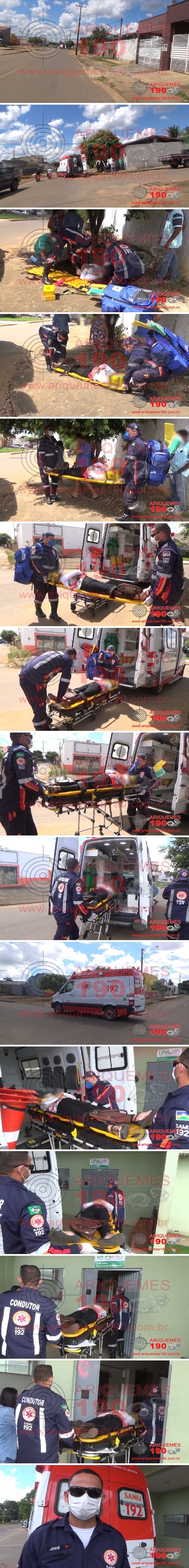 Mais um acidente de trânsito é registrado em Ariquemes. Dessa vez o fato ocorreu na Rua Taboca com Jandaias, Setor 02 em Ariquemes, onde duas mulheres ficaram feridas. Populares que estavam no local relataram à equipe de reportagens do site Ariquemes190 e Canal 35.1 Digital, que duas mulheres trafegavam a via em uma moto, quando houve a colisão com um automóvel, sendo que, com o impacto da queda, condutora e passageira da moto obtiveram múltiplas escoriações pelo corpo, sendo que a condutora apresentava um quadro mais importante, pois queixava-se de fortes dores na região do quadril. Uma equipe do Serviço de Atendimento Móvel de Urgência (SAMU) foi acionada, onde ao chegar no local a passageira dispensou o atendimento, sendo os esforços dos socorristas concentrados totalmente ao atendimento da condutora, a qual foi imobilizada em prancha rígida, com colar cervical e red block, sendo logo após a realização dos procedimentos pré-hospitalares, encaminhada à Unidade de Pronto Atendimento (UPA) para ser avaliada pela equipe médica de plantão.