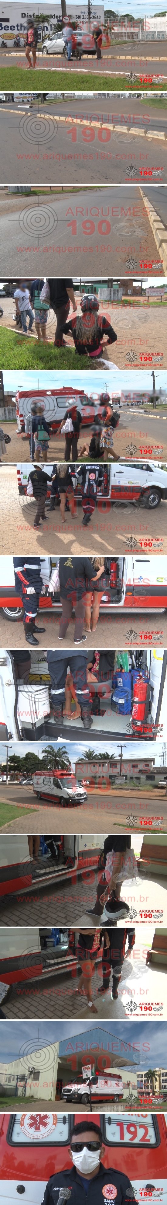 O fato, que poderia ter sido mais grave, ocorreu na Av. Capitão Sílvio, Áreas Especiais em Ariquemes, onde um ciclista cruzou repentinamente a via, vindo a colidir com a motociclista que trafegava no momento. Por sorte a garota que estava na motoneta Honda/Biz obteve apenas escoriações leves e apresentava algumas dores pelo corpo. No momento do acidente a equipe de reportagens do site Ariquemes190 e Canal 35.1 Digital, realizava uma entrevista com a Secretária de Segurança e Trânsito, justamente para orientar a população quanto à colocação dos segregadores de pista, no intuito de inibir cruzamentos de pista nesse local para evitar acidentes, obrigando os condutores a realizarem o retorno, manobra que oferece maior segurança. Uma equipe do Serviço de Atendimento Móvel de Urgência (SAMU) foi acionada e após as avaliações de praxe, conduziu a garota à Unidade de Pronto Atendimento (UPA) para ser avaliada pela equipe médica de plantão.