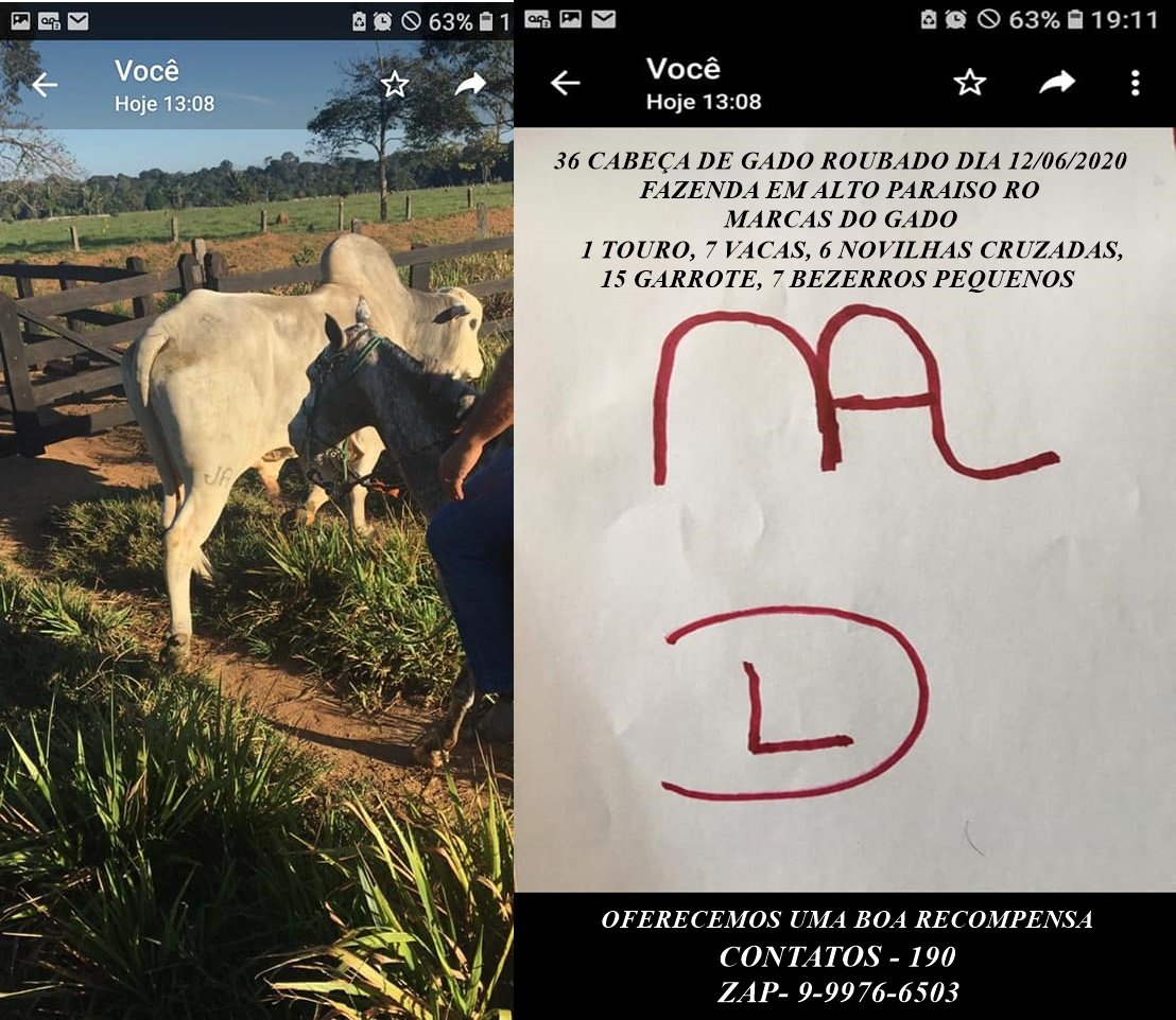 As Polícias Civil e Militar tentam identificar e localizar membros de uma quadrilha especializada em furto de gado e roubos na área Rural de Ariquemes e região do Vale do Jamari, que utiliza caminhões boiadeiros nas ações criminosas. Neste final de semana os meliantes voltaram a agira na Linha C-80, TB-30 de Alto Paraíso, onde informações levantadas, os meliantes entraram a pé na propriedade, cortaram os arrames e com cavalos dos próprios meliantes, prenderam no curral 36 cabeças de gado, sendo 1 touro, 6 vacas cruzadas, 15 garrotes e 7 bezerras pequenas. Dois caminhões boiadeiros trucados foram vistos nas imediações e um carro dando apoio. Os meliantes entraram na propriedade e levaram os animais. Há outras informações de um veículo Gol de cor preto que tem percorrido a área rural só para monitorar as propriedades rurais. Um dos caminhões esbarrou na porteira, deixando marca de tinta amarela, fato constatado pela PM que esteve no local. Caso você tenha alguma informação que leve à recuperação desses animais ligue: 9 9967-7169 ou 9 9964-5055, que será bem gratificado.
