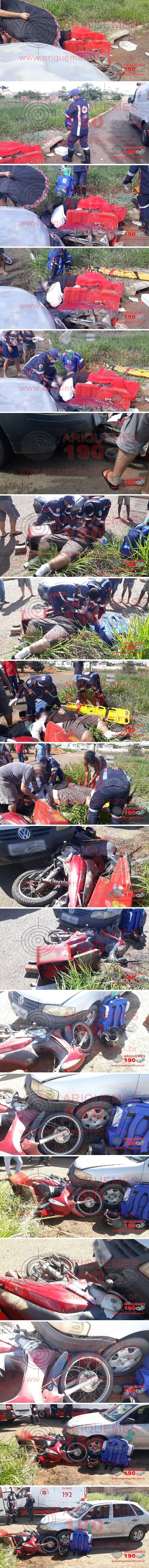ARIQUEMES: Grave acidente entre carro e moto deixa entregador com possíveis múltiplas fraturas