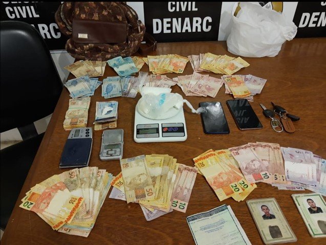 No local, os policiais encontraram no interior da residência de Cleidson dinheiro, balança e drogas. Já na residência de Danilo os investigadores encontraram dinheiro.