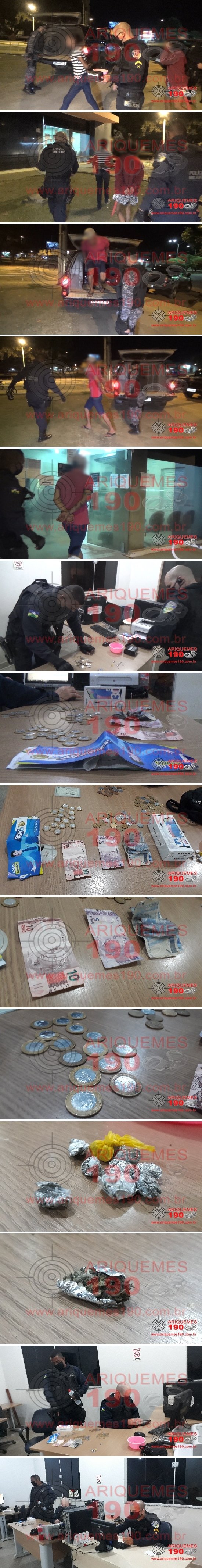 No início da noite dessa quarta-feira, 16/06 por volta das 20h40m, por determinação da Central de Operações do 7º BPM, a guarnição da Polícia Militar se deslocou até a Rua Registro, Setor 09 em Ariquemes, para averiguar uma denúncia de roubo, tendo como bem subtraído um aparelho celular. Foi mantido diálogo com a testemunha, a qual relatou que adquiriu um aparelho celular marca Samsung, modelo A30 de cor branco e presenteou sua namorada. Nesta data, a testemunha tentou por diversas vezes manter contato com sua namorada através de ligação telefônica, porém não obteve êxito e durante o início da noite ficou sabendo através da mãe da namorada que o citado aparelho celular teria sido subtraído por duas mulheres e que tais mulheres afirmavam que o aparelho celular serviria como forma de pagamento por uma dívida relativa à droga e saberia o endereço. Diante da informação os policiais se deslocaram à Rua Antônio Arruda, Setor 10, onde foram recepcionados por um homem, o qual se identificou como proprietário da residência e uma mulher, sendo lhes informado sobre a denúncia de subtração de um aparelho celular, bem como a denúncia de tráfico de drogas, onde estes nos informados que nada saberiam sobre o aparelho celular. O senhor franqueou a entrada dos policiais na residência, afirmando ainda que no local não teria nenhum tipo de droga ilícita. Foi então adentrado ao quintal para dar início à averiguação no interior da residência no intuito primeiramente de localizar o aparelho celular, nesse momento saiu do banheiro outra mulher, a qual se identificou também como proprietária da residência, onde esta também foi questionada sobre o aparelho celular subtraído e sobre o armazenamento e comércio de drogas. A senhora afirmou aos policiais nada saber sobre o aparelho celular e informou que se fosse de interesse da guarnição poderia averiguar o imóvel que não seria localizado nenhuma droga ilícita. Durante averiguação, tendo a supervisão dos proprietários, foram localizados no quarto pertencente à última abordada e seu amásio, precisamente no interior de uma bolsa na cor preta, 11 (onze) invólucros, sendo 10 (dez) contendo substância análoga a droga tipo Crack e 01 (um) invólucro contendo substância análoga a Maconha, bem como a quantia de R$ 49,85 (quarenta e nove reais e oitenta e cinco centavos), valor distribuídos em uma cédula de R$ 10,00, cinco cédulas de R$ 2,00, uma cédula de R$ 5,00 e diversas moedas. Questionados sobre a droga localizada, todos os suspeitos afirmaram serem proprietários, porém negaram o comércio. A última abordada afirmou ainda que o dinheiro localizado seria referente a um pagamento recebido, porém não sabia qual seria o valor. Diante dos fatos, todos os envolvidos, juntamente com o material ilícito apreendido foram apresentados na Unidade de Segurança Pública (UNISP), onde foi lavrado o registro do Boletim de Ocorrência Policial sob n° 87.961/2020, para a devida tomada de providências cabíveis.