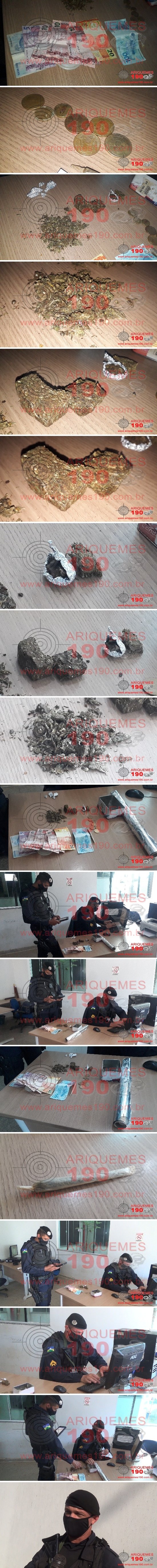 Em um trabalho integrado entre forças policiais têm obtido êxito em desmantelar inúmeros pontos de venda de drogas ilícitas em Ariquemes, e dessa vez não foi diferente! Na tarde desse domingo, 05/07 por volta das 15h30m, a guarnição da Polícia Militar denominada patrulha Charlie, realizava ronda de rotina pela Rua Palmas, Setor 9 em Ariquemes, quando recebeu uma informação de um transeunte, que em uma residência daquela Rua teriam várias pessoas aglomeradas em uma residência onde um homem estaria agredindo uma mulher, e que, possivelmente ali haveria venda ou consumo de substâncias entorpecentes. Os policiais se deslocaram para frente da casa indicada, onde ali chegando avistaram um elemento que ao visualizar a guarnição jogou algo no chão. Ao ser abordado e questionado se residia ali, o suspeito respondeu que sim, e autorizou a entrada dos policiais para averiguar a denúncia de agressão, momento em que os PMs perceberam que naquele local estaria ocorrendo consumo de drogas. Além do rapaz suspeito, que é menor de 17 anos de idade, estava ali mais um rapaz e quatro garotas maiores, sendo que todos afirmaram que estavam consumindo Maconha e quem teria lhes fornecido seria o rapaz maior. Mediante as afirmações, os policiais realizaram uma revista minuciosa na casa, onde na cozinha foi localizado um pote contendo certa quantia de substância aparentando ser Maconha, e em outro cômodo fora encontrada mais uma porção de Maconha. Também foram encontrados um cigarro embalado para consumo, um pote contendo dois pedaços grandes de substância aparentando ser Maconha, e uma porção já cortada, pronta para o consumo, um rolo de papel alumínio utilizado para embalar a referida droga, e um valor de R$ 168,45 (cento e sessenta e oito reais e quarenta e cinco centavos), que seria o resto do valor recebido do Auxílio Emergencial do Governo. Já com o menor foi encontrado em sua posse de um involucro de substância aparentando ser Maconha, e um pedaço da referida droga. Mediante aos fatos os seis suspeitos que estavam na casa, juntamente com o material ilícito foram apresentados na Unidade de Segurança Pública (UNISP) para o registro do Boletim de Ocorrência Policial sob n° 97.908/2020, para a tomada de providências cabíveis.